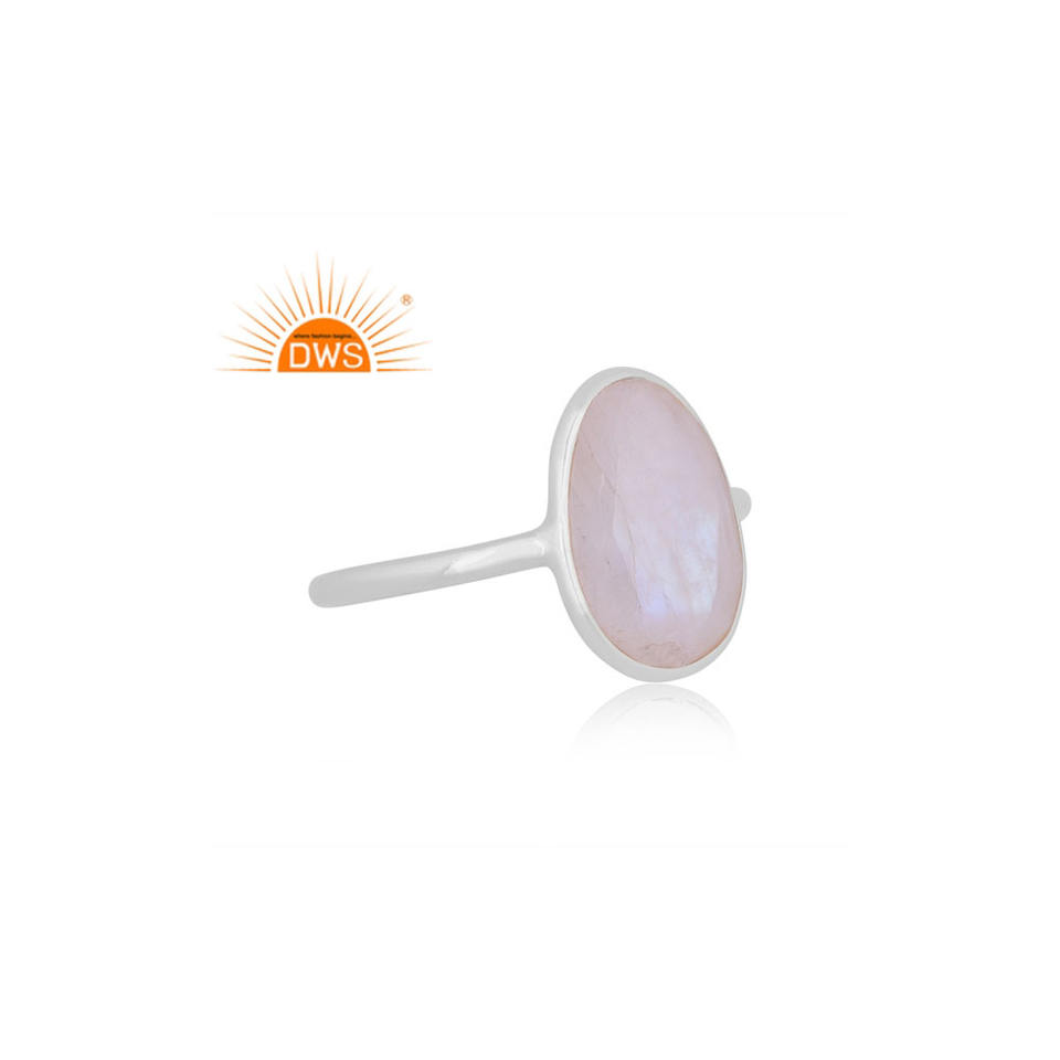Best Selling Fine Sterling Silver Natural Rainbow Moon Stone Gemstone Stackable Ring Custom Jewelry For Women Gift For Her