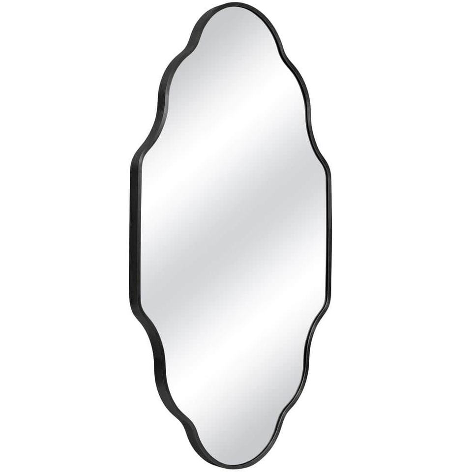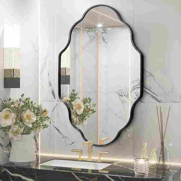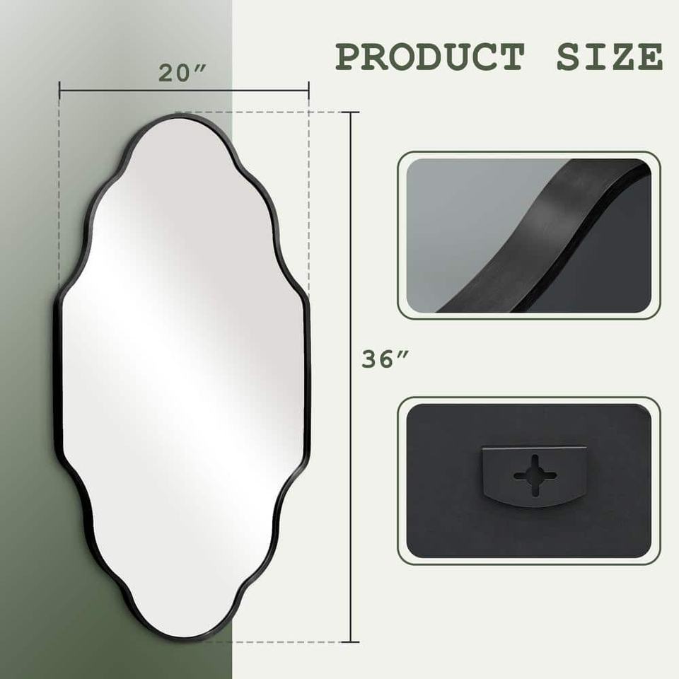 Best-Selling Gold Modern Minimalist Metal Frame Wall Bathroom Mirror Shelf Scallop-Design Glass 20x36 Inch Living Room Bedroom