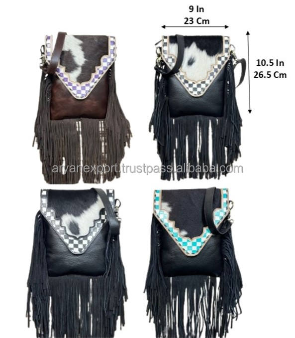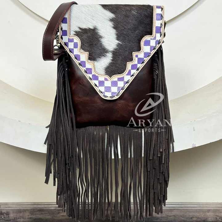 Product name:Hand Tooled Checkered Leather Fringe Crossbody Bag
