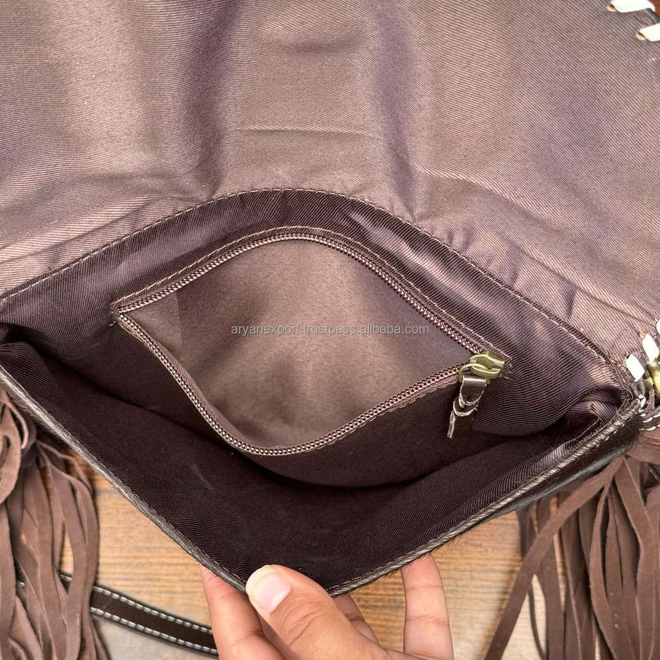 Product name:Hand Tooled Leather Cowhide Fringe Bag & Clutch Combo Set