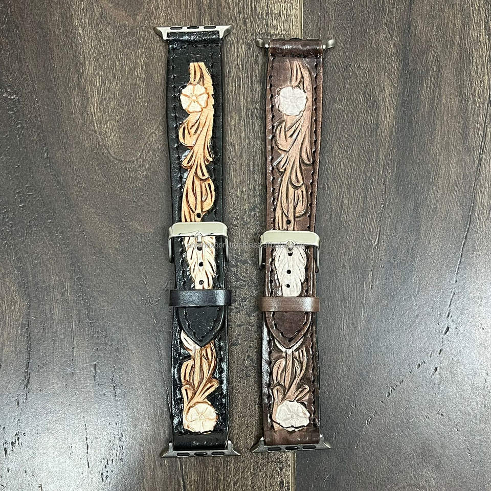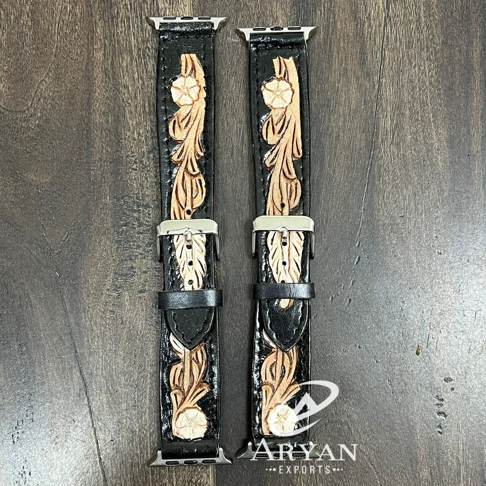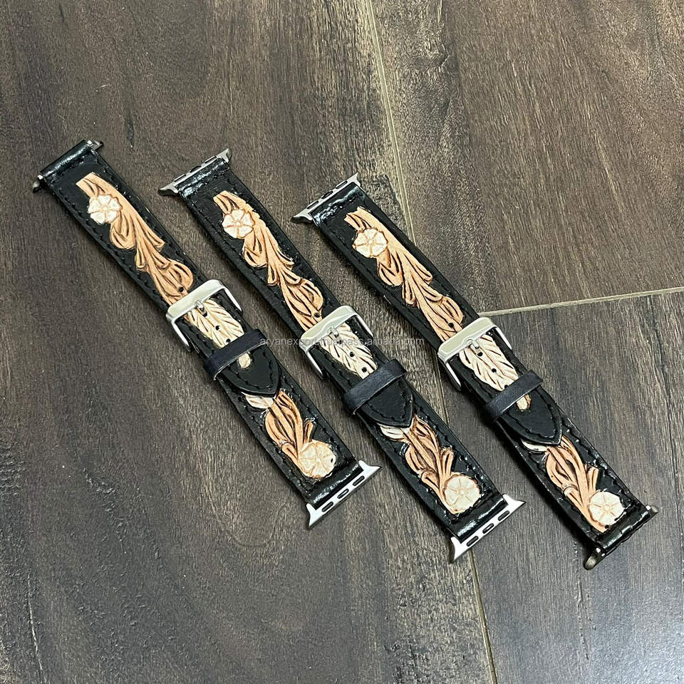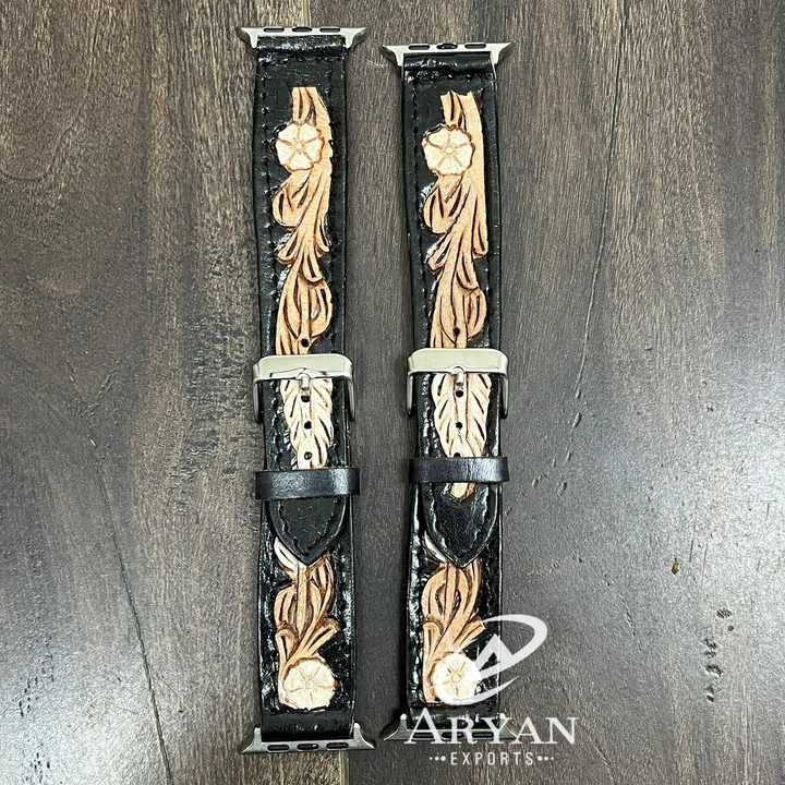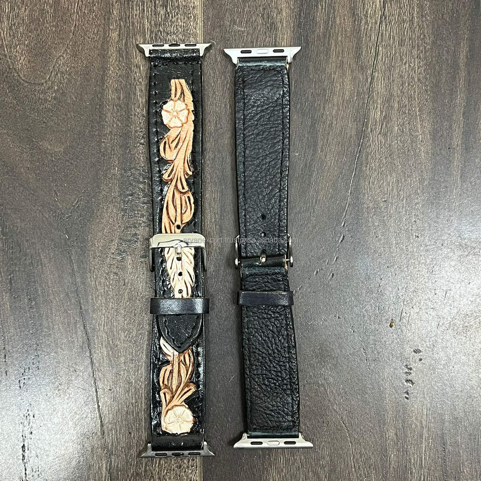 Best Selling Hand Tooled Genuine Leather Watch Strap Metal Pin Buckle Cowhide Leather Watch Band Quick Release Replacement Strap