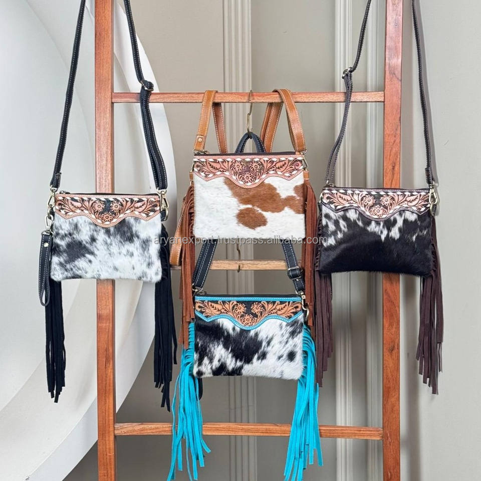 Best Selling Hand Tooled Leather Bags Purses & Handbags for Women Luxury Genuine Cowhide Leather Fringe Crossbody Shoulder Bags