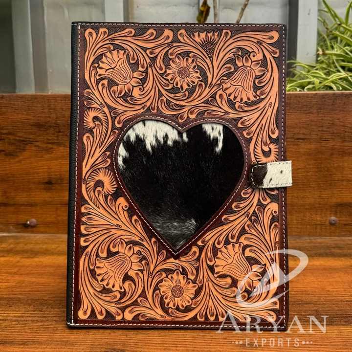 Best Selling Hand Tooled Leather Business Writing Portfolio Case File Folders with Pen Holder Cowhide Magnetic Closure Portfolio
