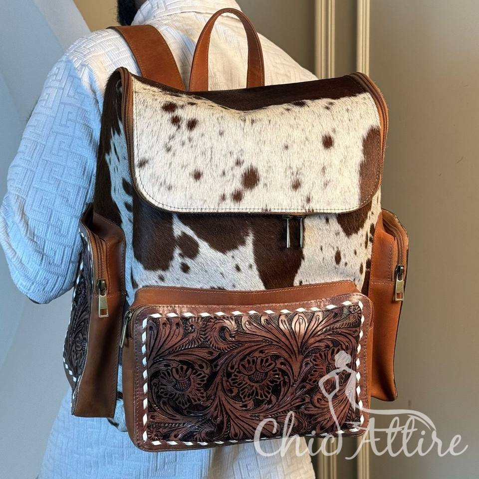 Hand Tooled Cowhide Leather Diaper Bag Backpack
