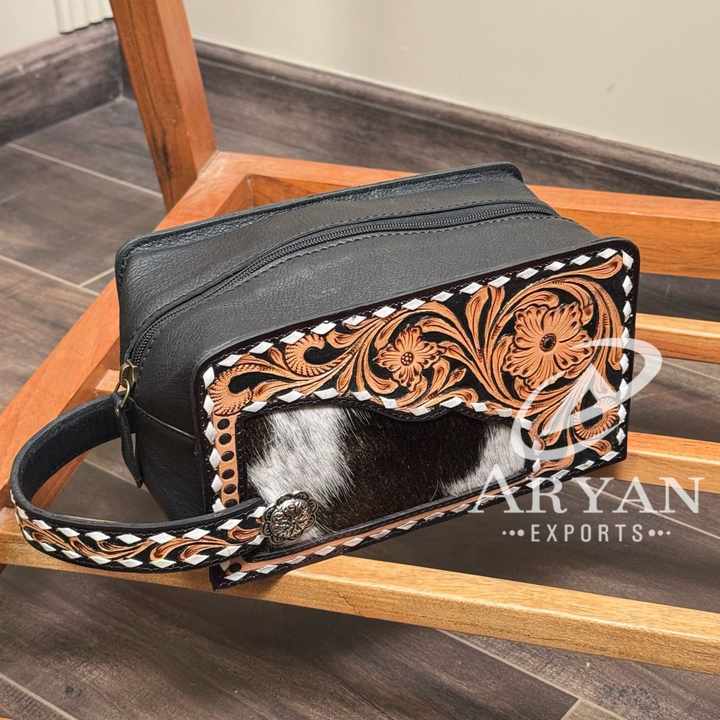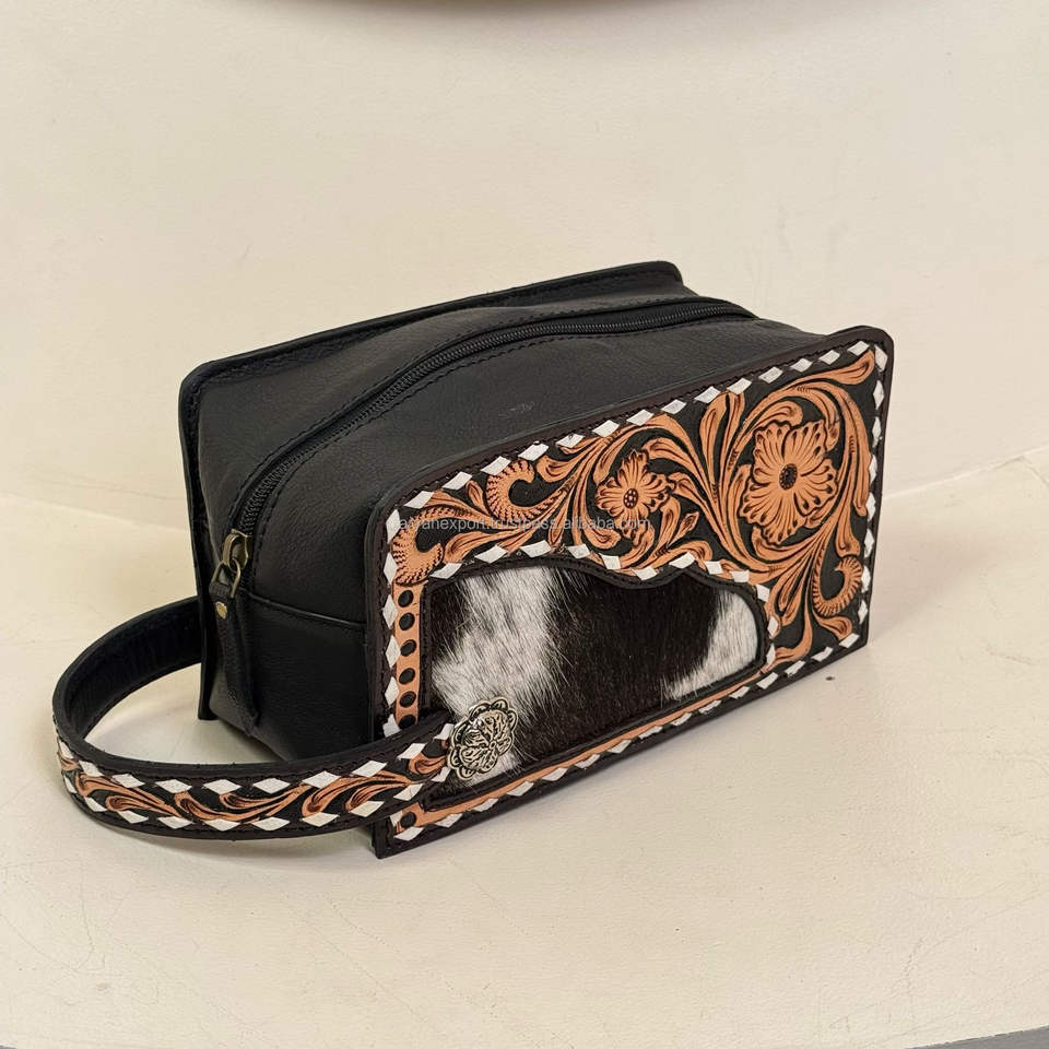 Product name:Hand-tooled Cowhide Women Makeup Bag