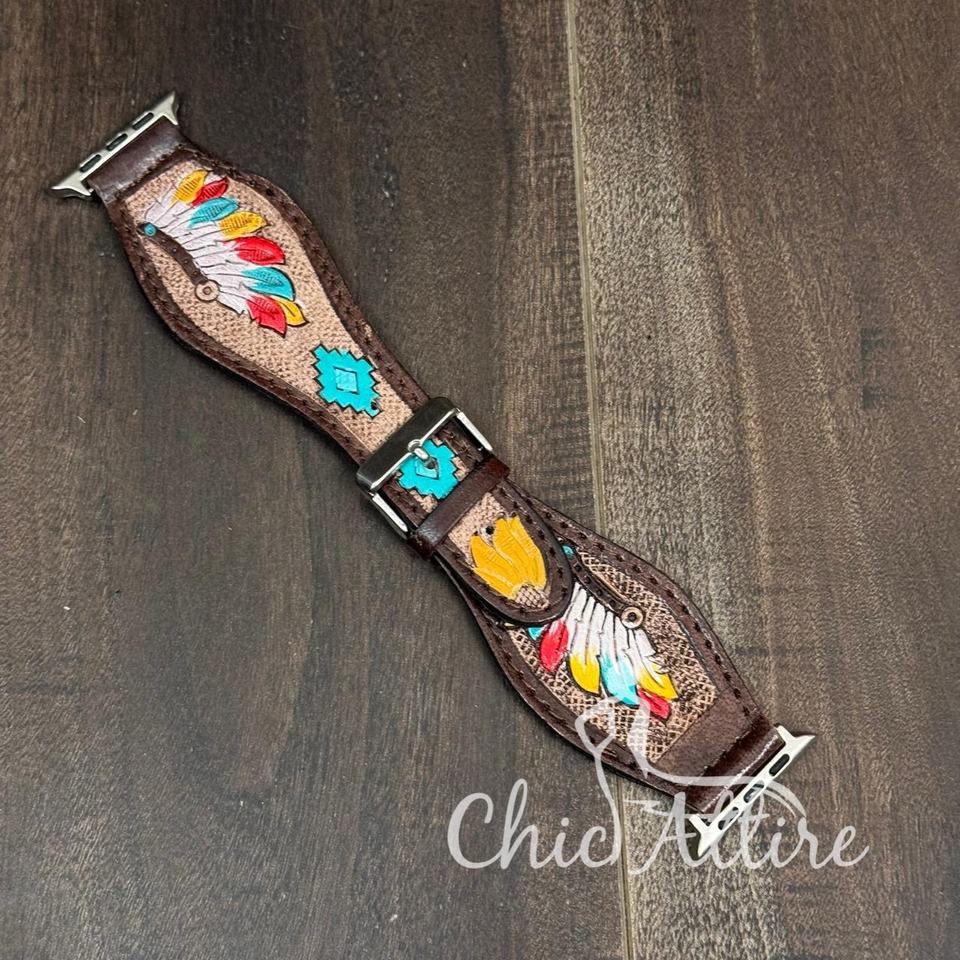 Best Selling Hand Tooled Leather Watch Strap Genuine Leather Watch Band 2025 New Gifts Western Gift Business Casual Fashion