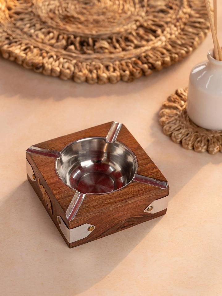 Best Selling Durable & Stylish Resin & Acacia Wood Ashtray Handcrafted for Indoor & Outdoor Use Stylish Accessory for Export