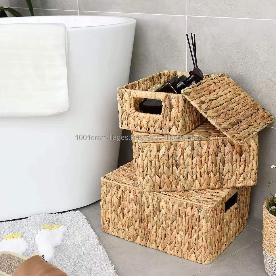 Best Selling Handmade Natural Water Hyacinth Basket With Handle Cheap Wholesale Sustainable Lightweight Storage Bin From Vietnam
