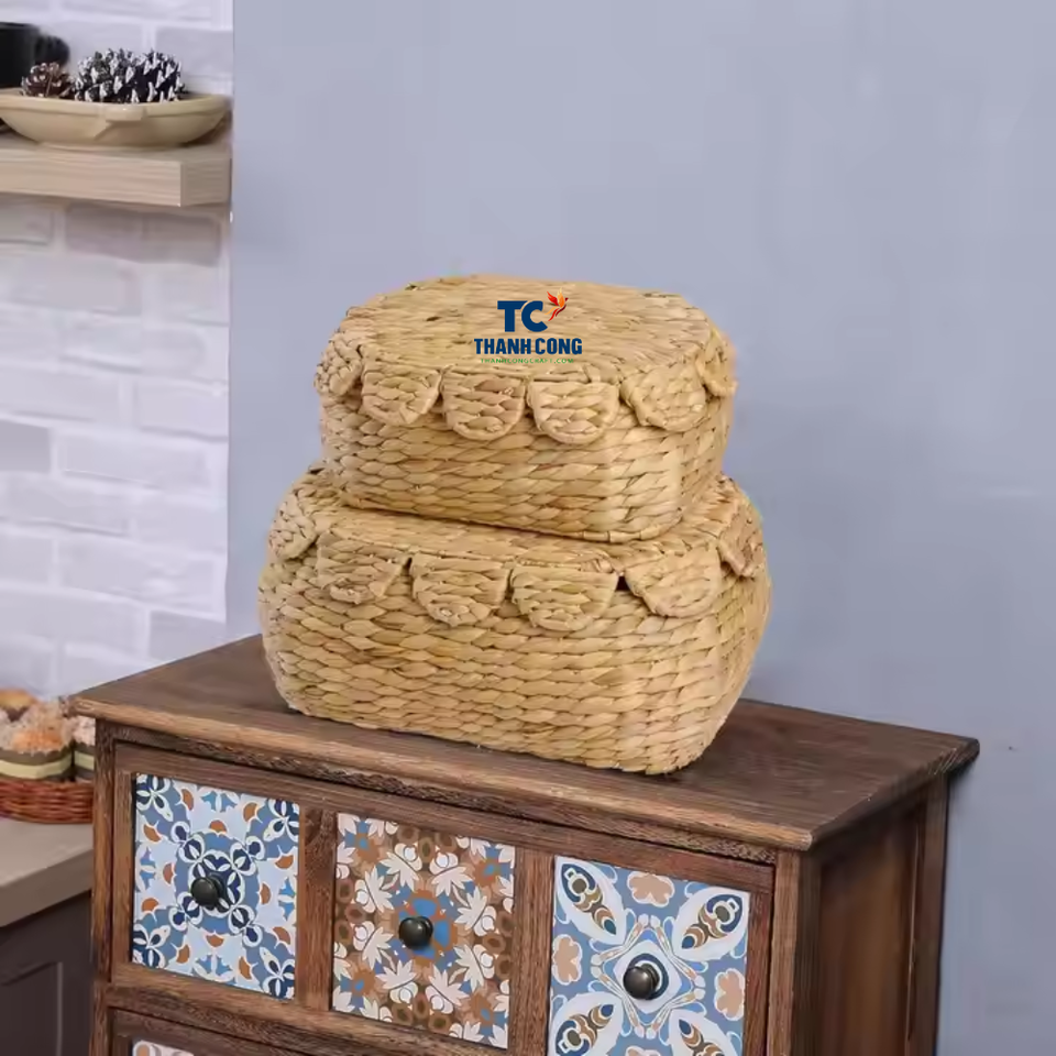 Product name:Scalloped Water Hyacinth Basket With Lid