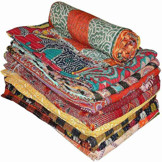 Best Selling Handmade Vintage Lightweight Reversible Kantha Quilt Patchwork Design Washable Simple Style for Hotel Home Use