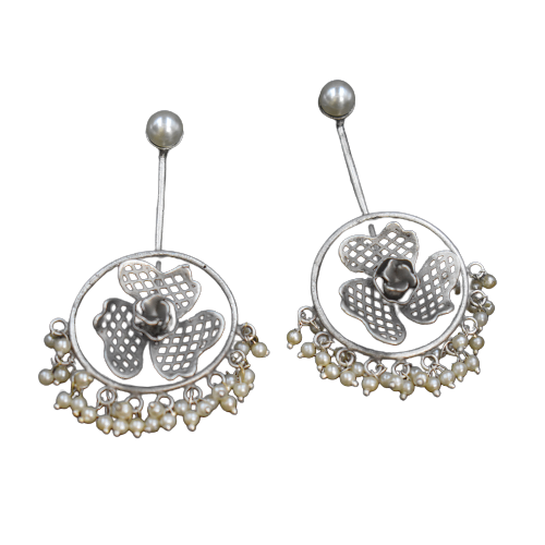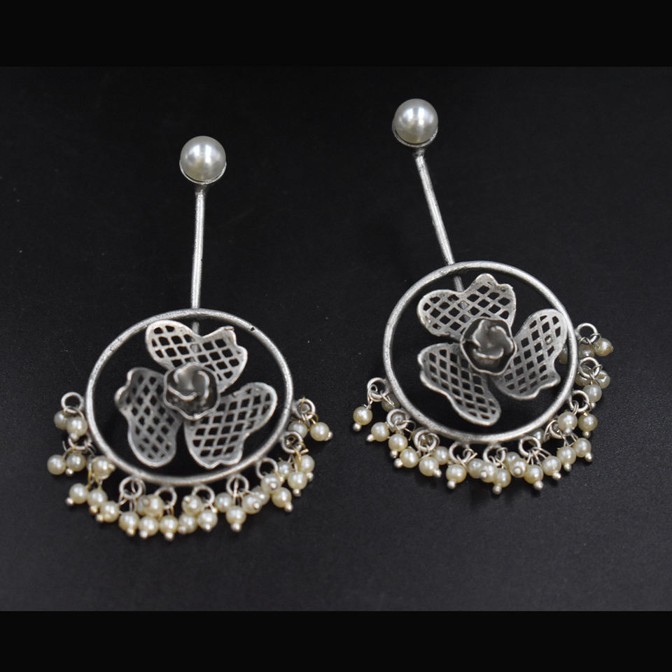Best Selling High Quality Brass Earring Fashion Jewelry Silver Look Alike Flower Long Stud Earring Jewelry for Women and Girls