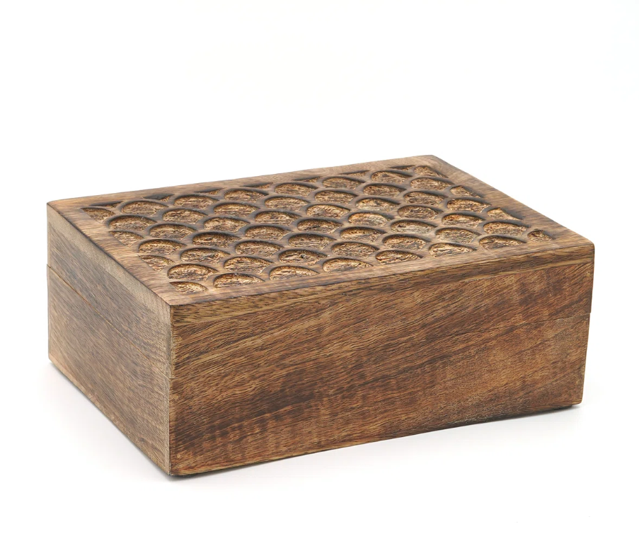 Best Selling High Quality Large Mango Wood Box Scallop Carved Design for Jewelry Treasure Storage Wood Crafts Wall Signs