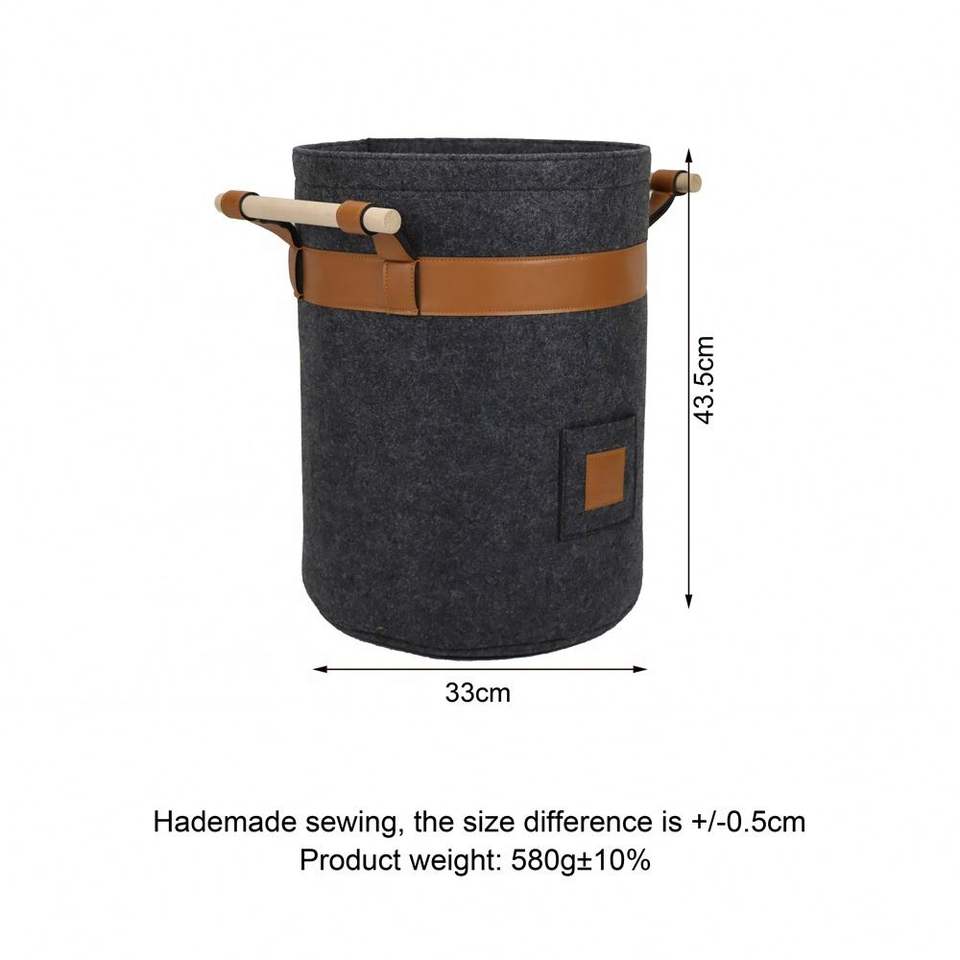 Felt Storage Basket Round Shape with PU Leather Felt Storage Basket