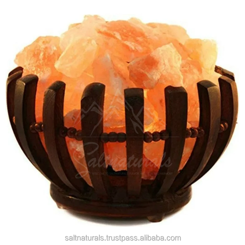 Best Selling Himalayan Crystal Salt Bowl Lamp with Handmade Wooden Basket Natural Air Purifying & Soothing Warm Light Love Style
