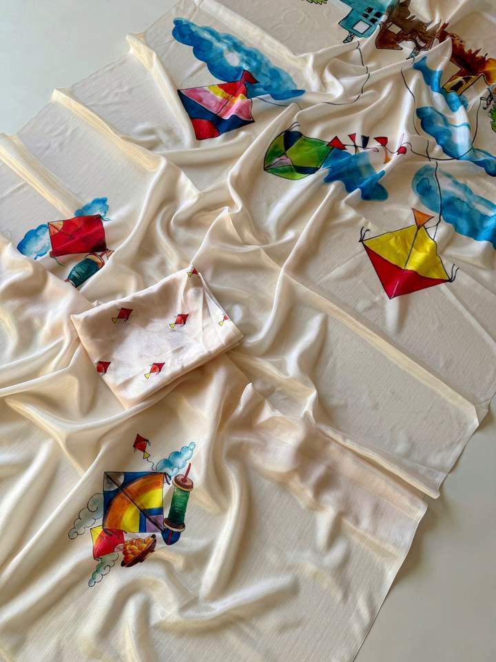 Best Selling Indian Pakistani Soft Chinon Silk Saree for Women and Beautiful Kites From India In-Stock