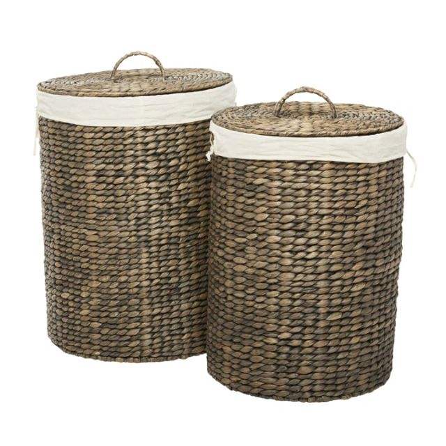 Best Selling Large Round Handwoven Water Hyacinth High Quality Black Laundry Basket With Lids & Liners For Home Organization