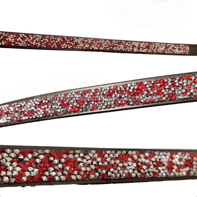 Best Selling Leather Bridle Headband Black or Brown Leather Horse brow band Customized With Fancy Designer Stone Hotfix Chain
