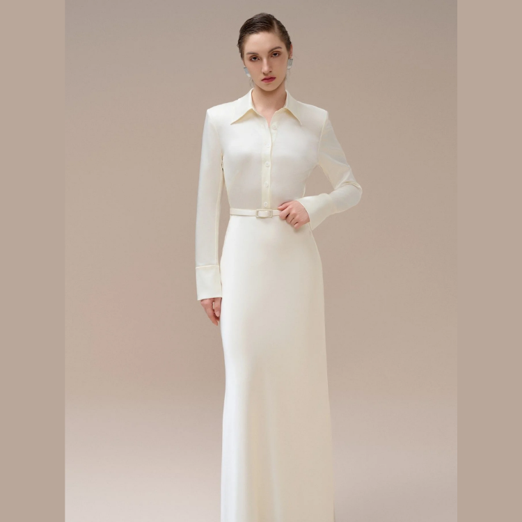Best-Selling Long Dresses Women Elegant AUDREY DAY DRESS Long Silk Dress Mison Satin Fabric Fashion Women's Clothing