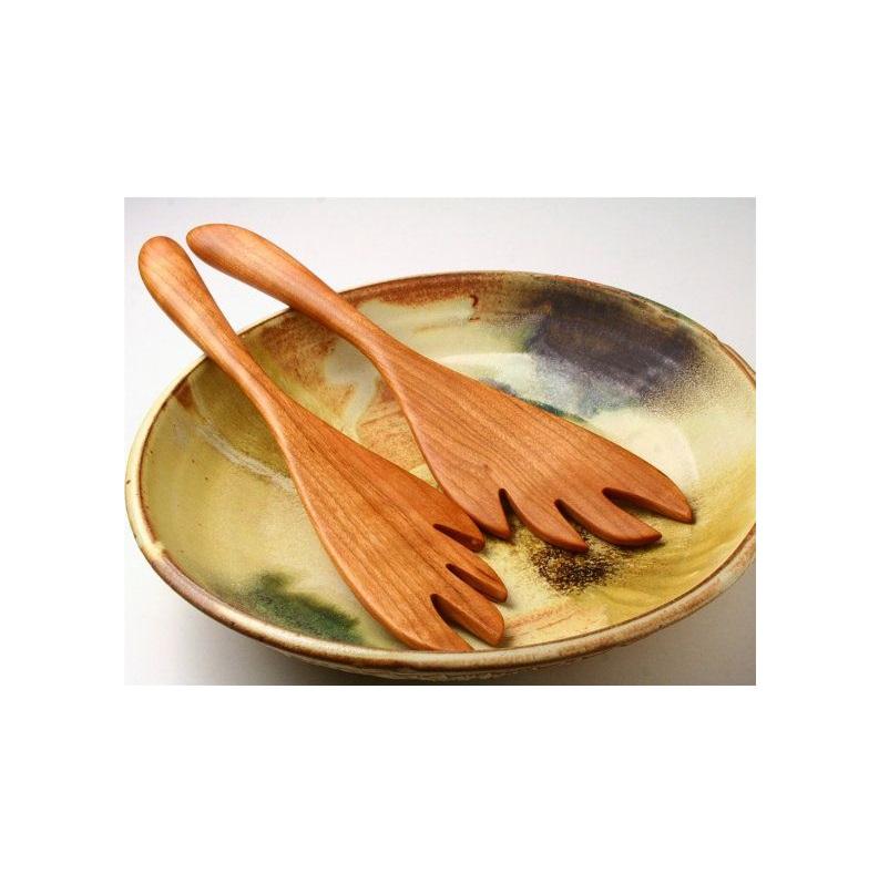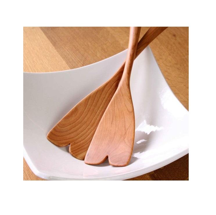 Best Selling Long Handle Acacia Wood Salad Utensils Set Popular Style Wooden Serving Tools for Parties Mirrored Polish