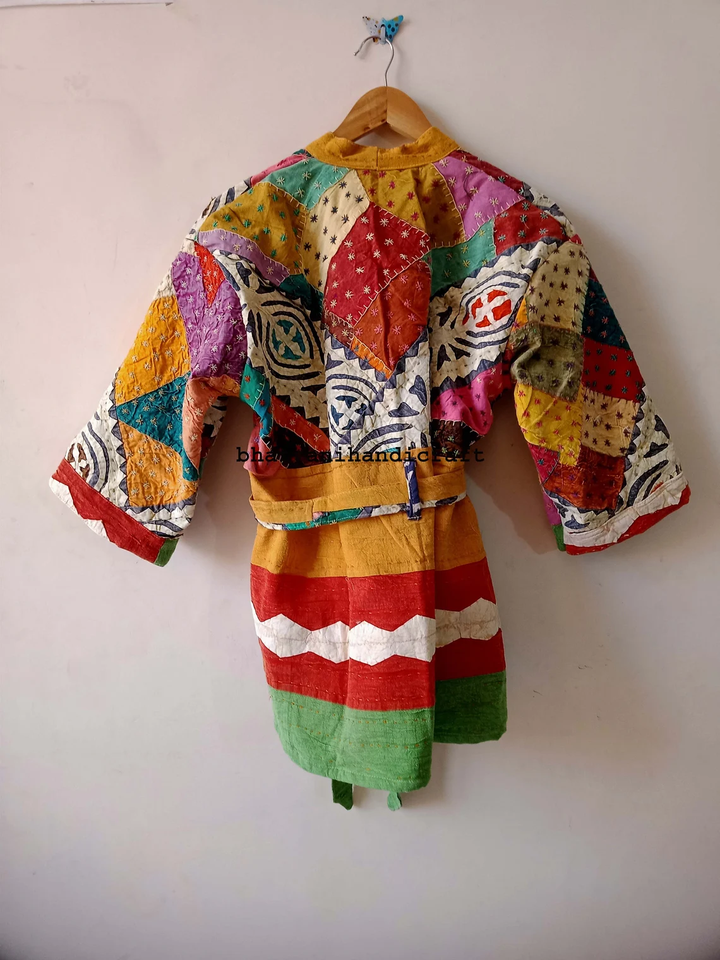 Best Selling Long Winter Quilted Coat Cut Work Embroidery Indian Kimono Style Vintage Kantha Jacket Cotton Belt Breathable