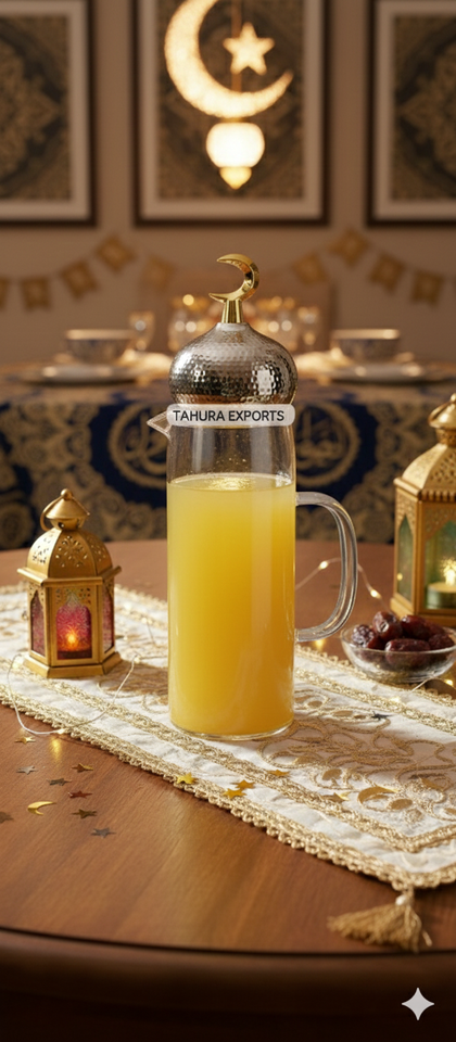 Best Selling Luxury 2026 Handmade Attractive Glass Storage Jar For Ramadan Table Decoration New With Minaret Lid And Jug For Eid