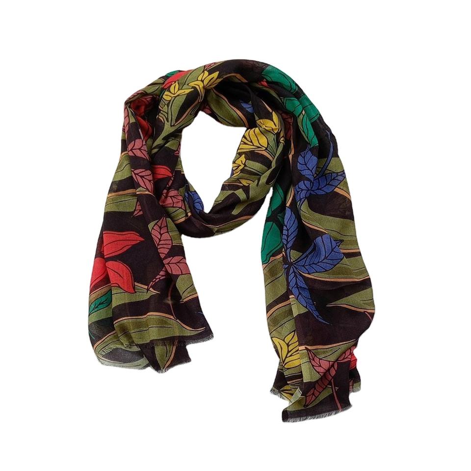 Best Selling Luxury Brand Women's Headscarf Emery Red Hibiscus Flower Printed Cotton Linen Winter Hijab Scarf Versatile Scarves