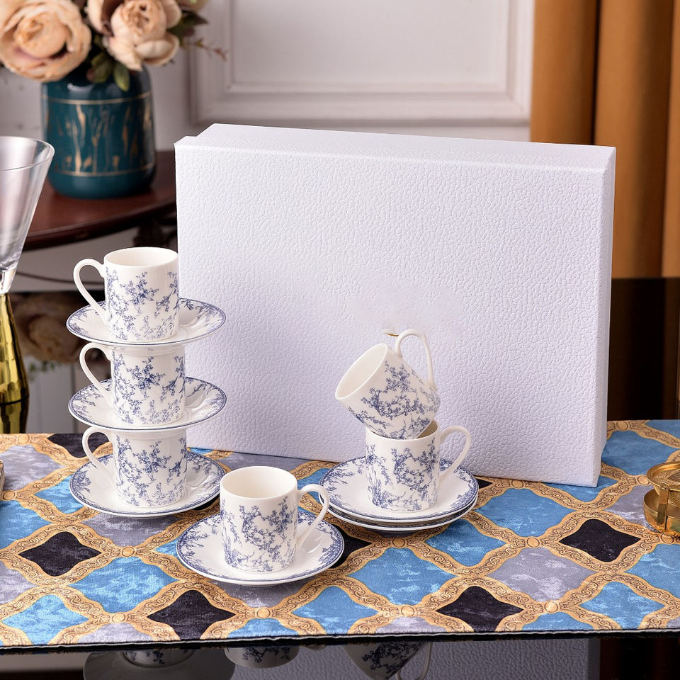 Best Selling Luxury Ceramic Eco-Friendly Concentrated 6 Cups and Saucers Gift Box