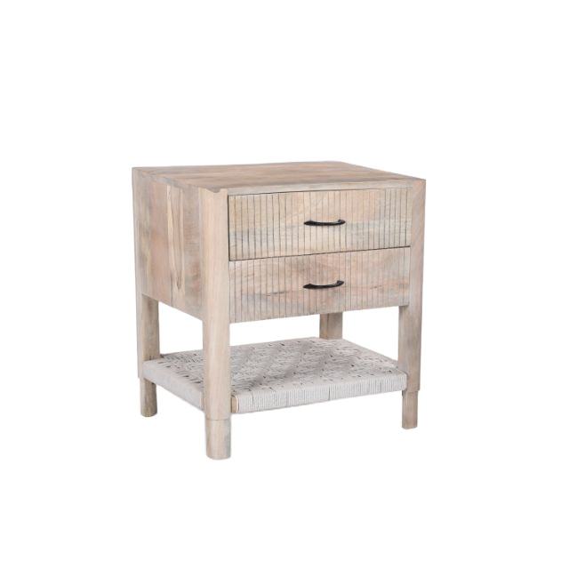 Handmade Solid Mango Wood Two-Drawer End Side Table Durable Modern Design Bedroom Dining Nightstand Storage Saving Space