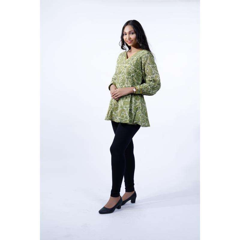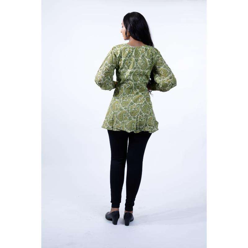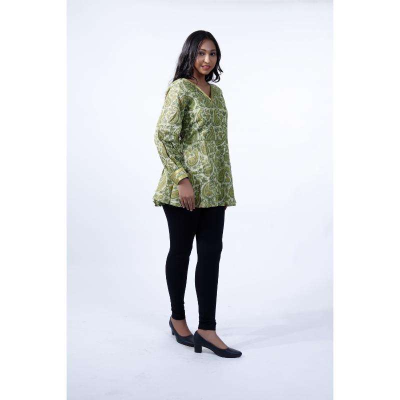Model Number:Mehendi Green Vanaspati Block Printed Peplum Tunic