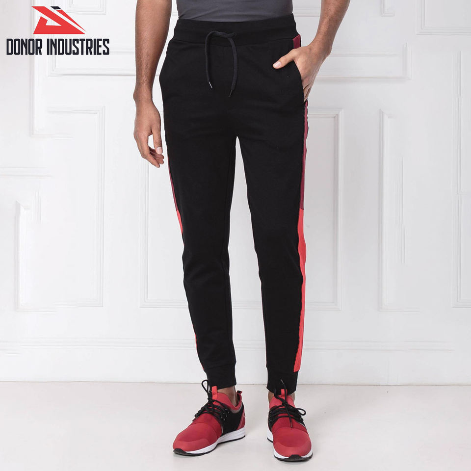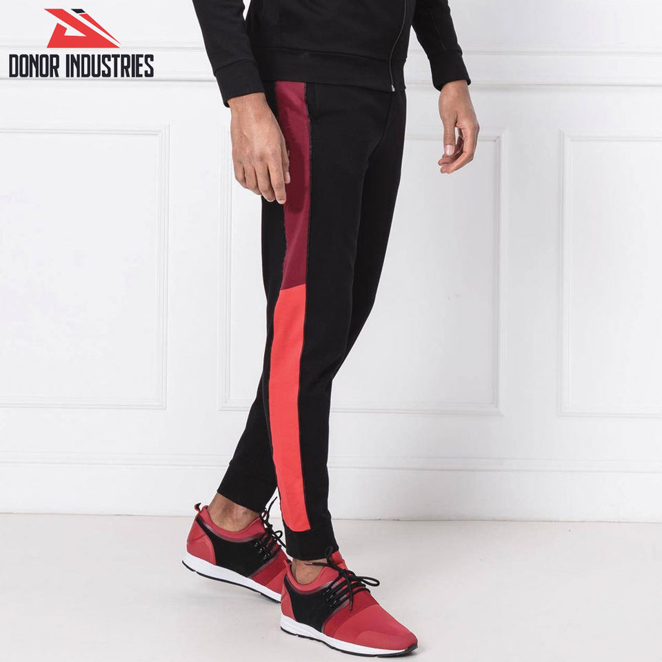 Best Selling Men's Casual Outer Wear Sweat Pants Black Red Contrast Color Soft Touch Fabric Customizable Straight Pattern