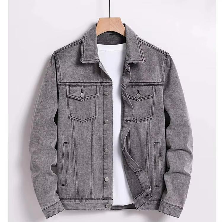 Best Selling Men's Vintage Denim Jacket Stand Collar Hooded Long Sleeve Autumn Wear with New Design Breathable and Comfortable