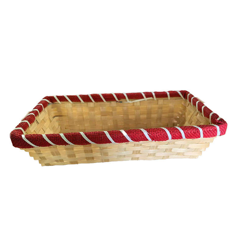 Best Selling Modern Bamboo Bread Basket with Red Decoration Rectangular Fruit or Gift Basket with Handles Circle Shape