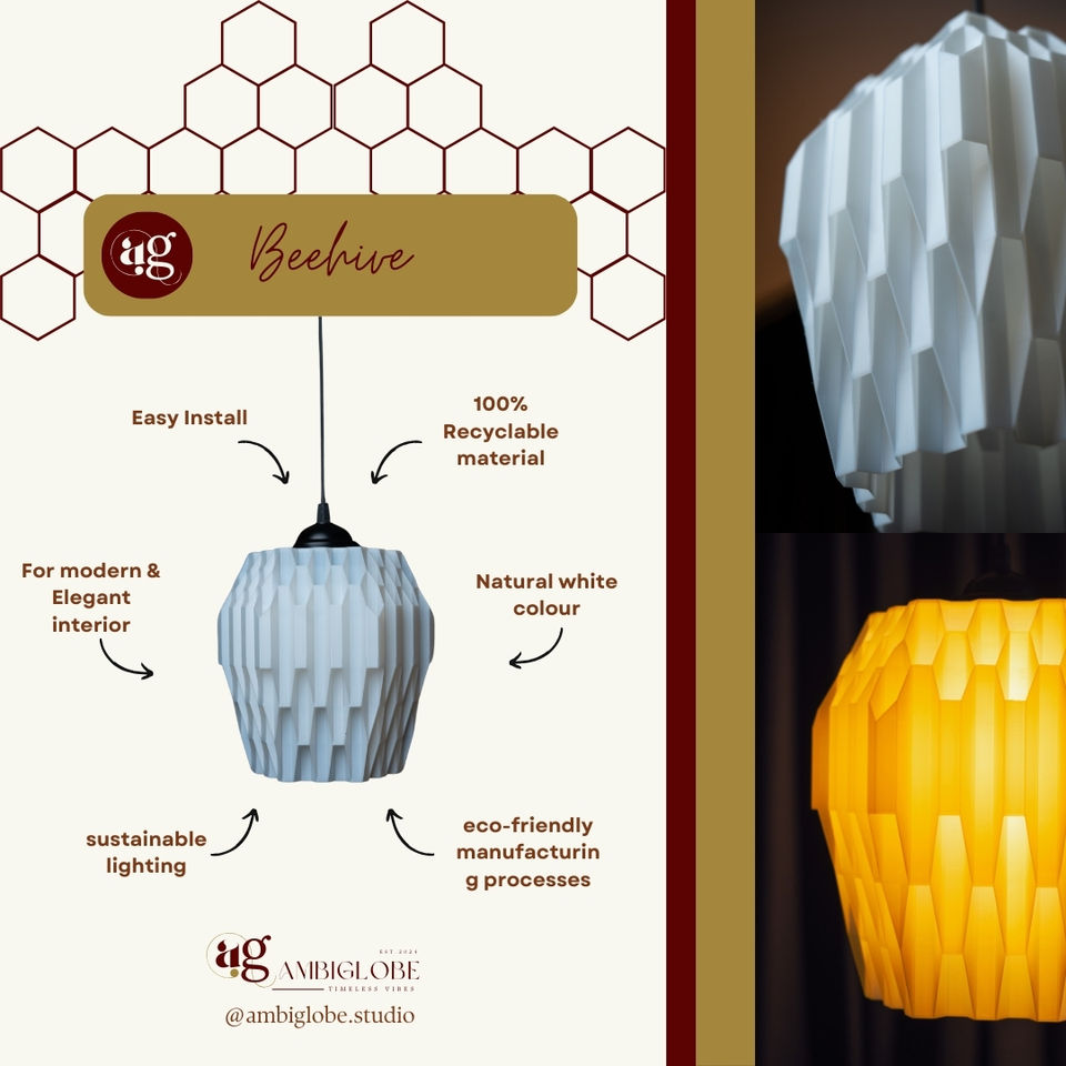Best-Selling Custom Size Modern Beehive Pendant Lampshade Eco-Friendly Handicraft Home Decor India-Made LED Dimmable 40,000