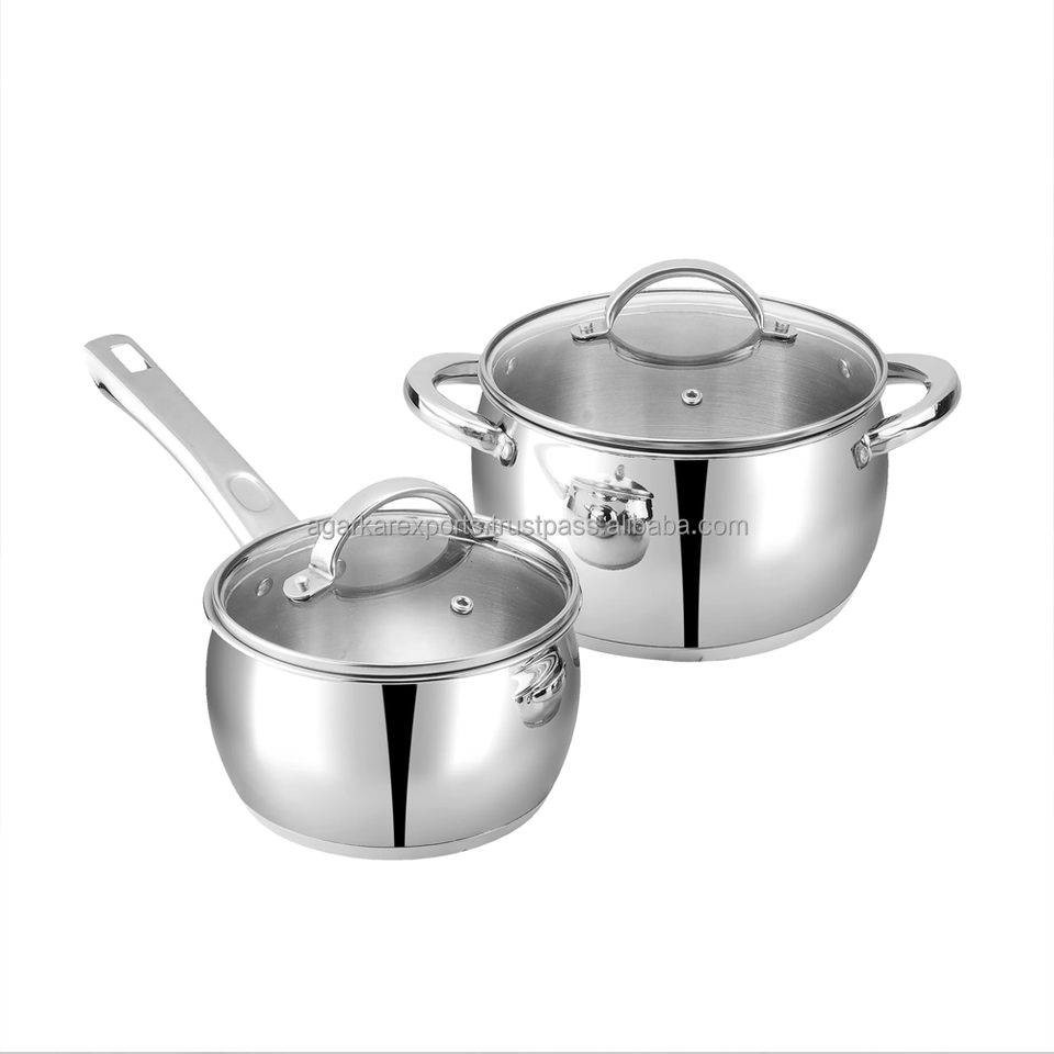 Best Selling Modern Stainless Steel Saucepans Tri-ply Bottom Heavy-Duty Tempered Glass Lid High Quality Cheaper Price Kitchen