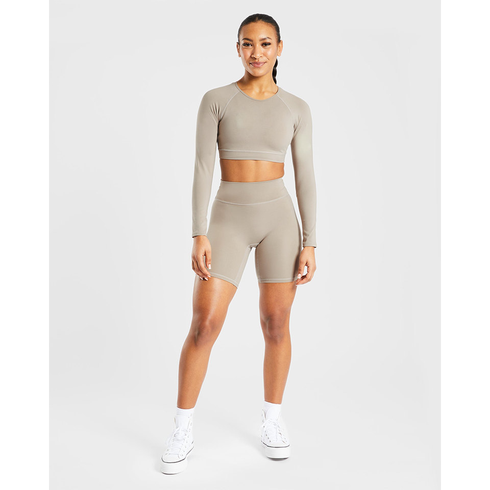 Best Selling Muted Taupe Women Staple Long Sleeves Crop Top 4 way Stretch Super Soft Lightweight Workout Crop Top Tees for Women