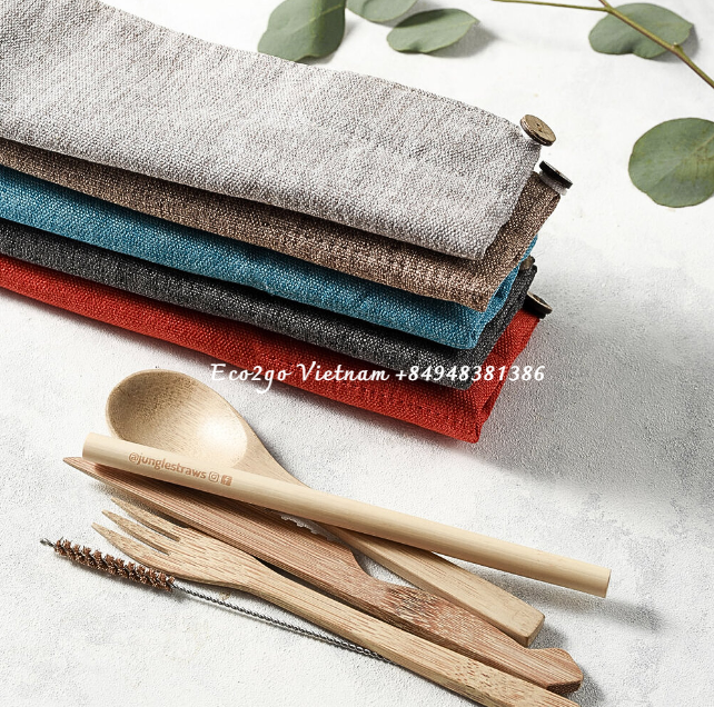 Best Selling!Natural Bamboo Cutlery Set for Kids/ Bamboo Travel Cutlery Set with Cloth Bag Engraved Laser Custom Logo
