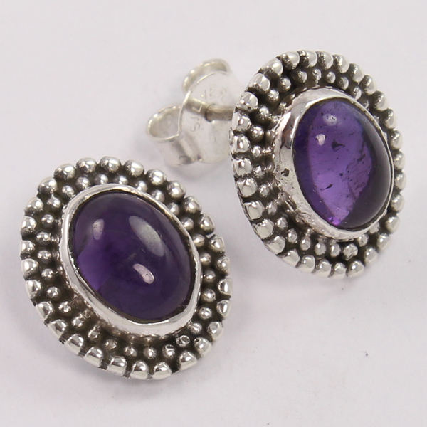 Best Selling Natural Stud Earrings With Oval Faceted Purple Amethyst 925 Sterling Silver Vintage Earrings For Girls And Women