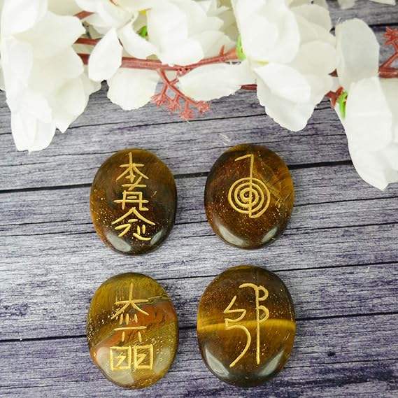 Cheap Price On Soha Agate Natural Tiger Eye Crystal Oval Set with Reiki Symbols for Chakra Balancing & Meditation On Sale
