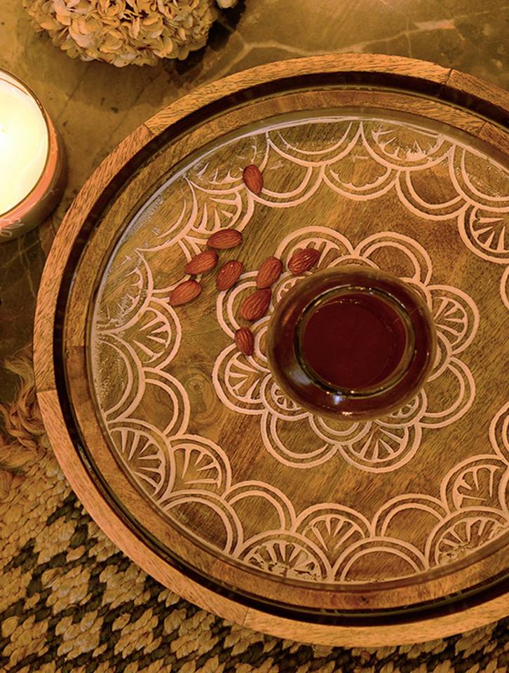 Product Name:Wooden Serving Tray with Metal Handles