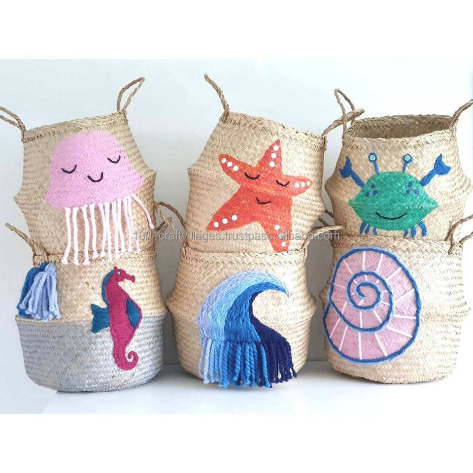 Best Selling Nesting Circle Seagrass Modern Foldable Belly Basket Woven Eco-friendly Durable Storage Home Organization