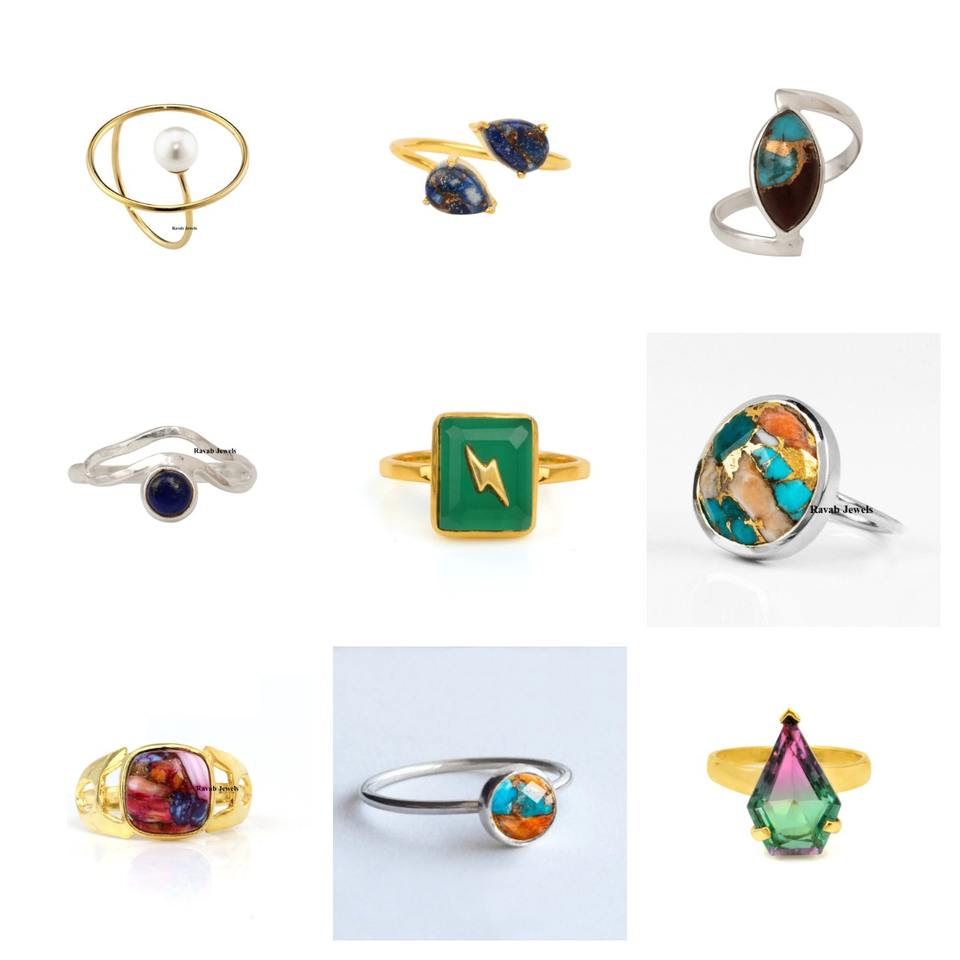 Product name:Natural Pink Opal Copper Sterling Silver Gold Plated Stacking Ring