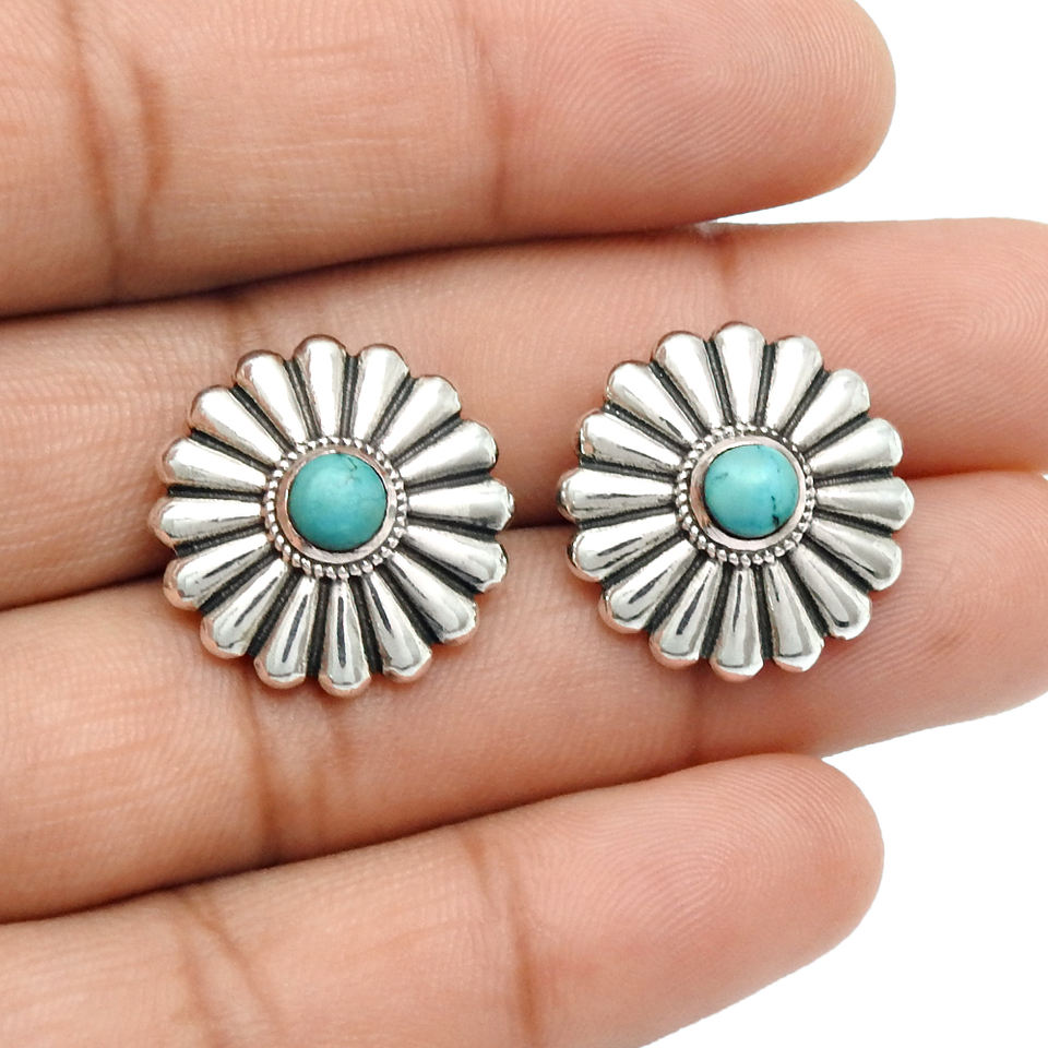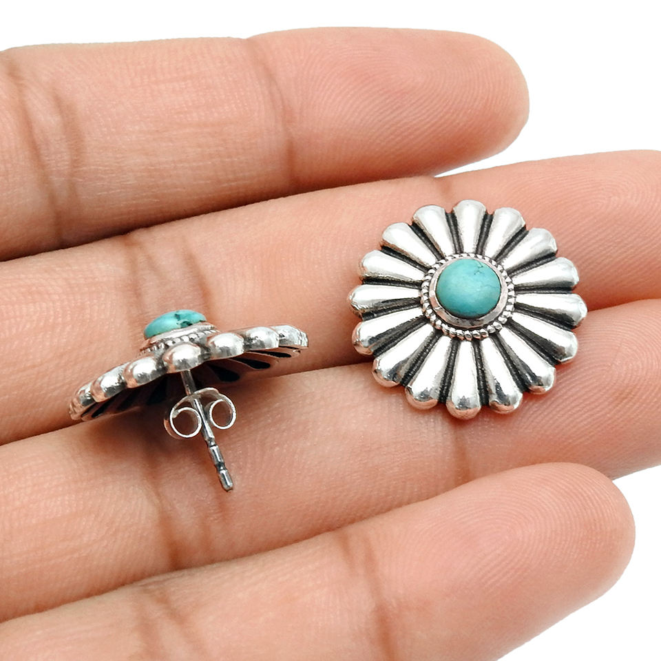 Best Selling New Design 925 Sterling Silver Natural Blue Turquoise Gemstone Flower Shape Stud Earrings for Woman Girls Jewelry