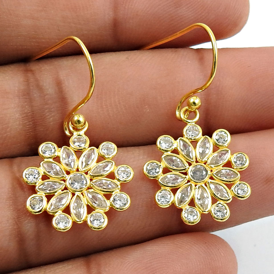 Best Selling New Design 925 Sterling Silver White Cubic Zirconia Flower Shape Gold Plated Dangle Earrings for Woman Girl Jewelry