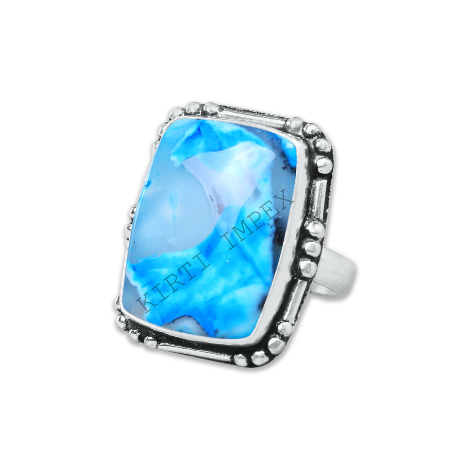 Best Selling New Fashion Finger Ring Solid Brass Dyed/Colored Dendrite Opal Gemstone Irregular Cut Assorted Rings Dainty Jewelry