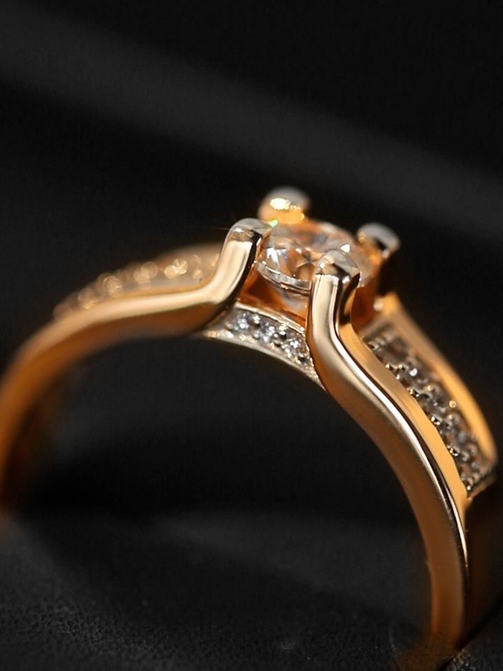 Best Selling OEM ODM Modern Stylish Elegant Rings 14K Solid Rose Yellow White Gold Ring With Cubic Zirconia