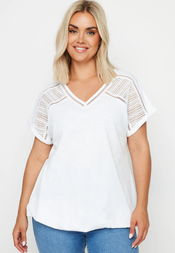 Best Selling OEM/ODM Standard Customizable White Crochet Bubble Hem T-Shirt for Plus-Size Women Casual Style Apparel Bangladesh
