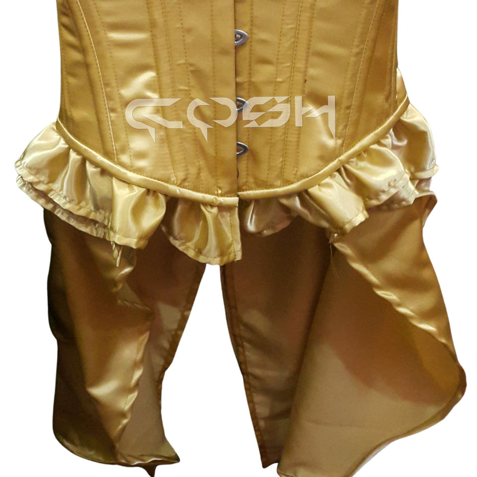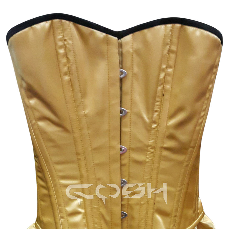 Best Selling Overbust Steelboned Gold Satin Corset With Busk Closure And Frill