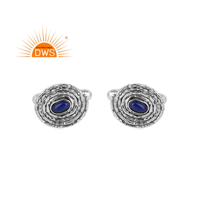 Best Selling Oxidized Sterling Fine Silver Natural Lapis Lazuli Gemstone Cuff Link Custom Jewelry Manufacturer