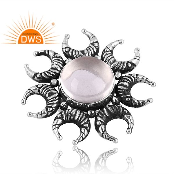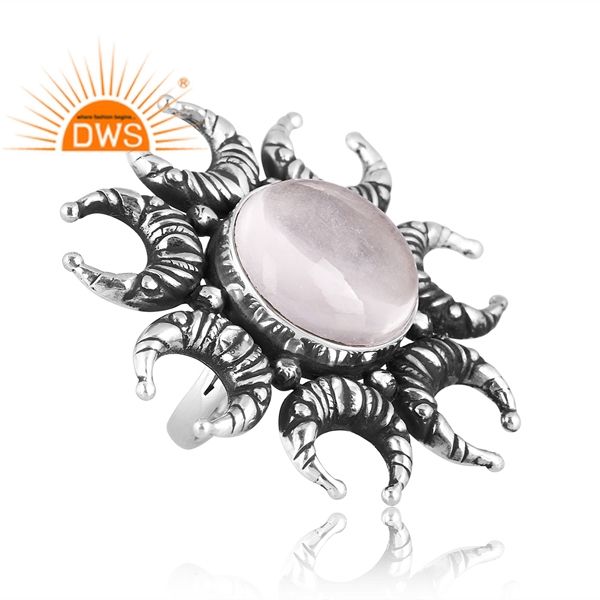 Best Selling Oxidized Sterling Silver Natural Crystal Quartz Gemstone Stackable Ring Custom Jewelry Manufacturer
