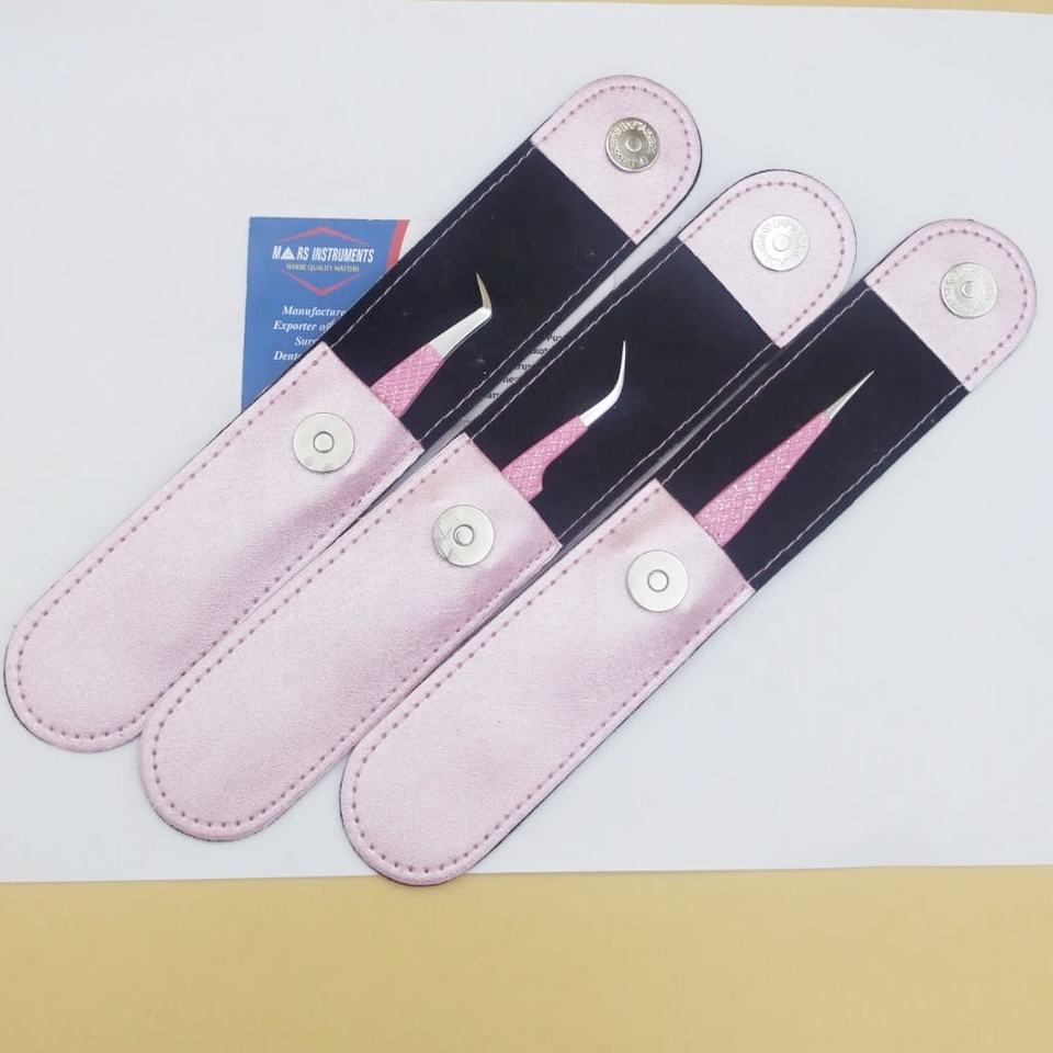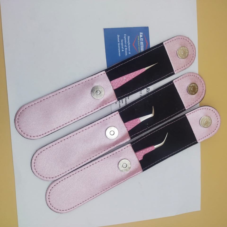 Best Selling Pink Eyelash Extension Tweezers with Leather Pouch
